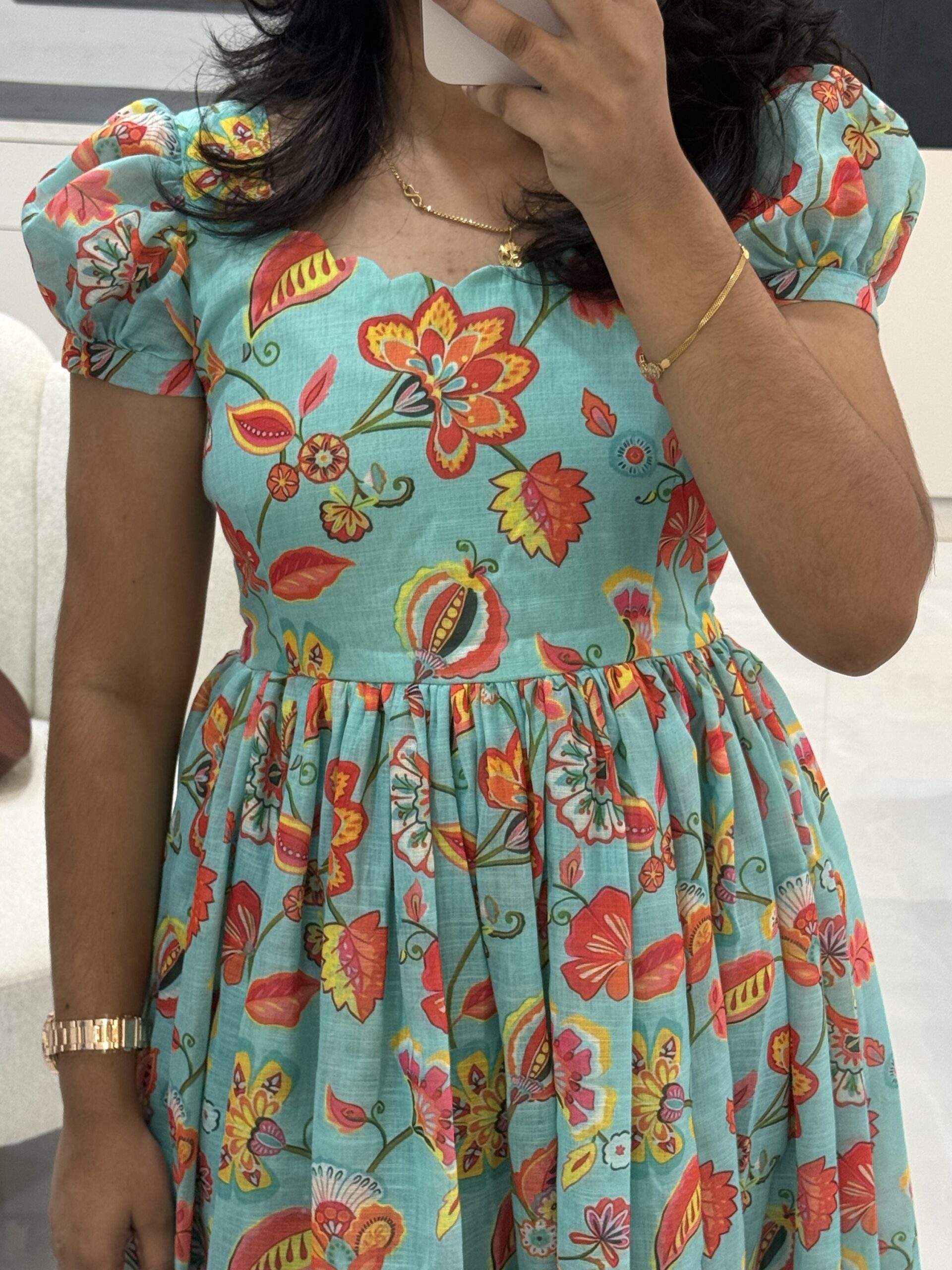 Lining:Has lining attached cotton in the yolk part crepe for the flare part